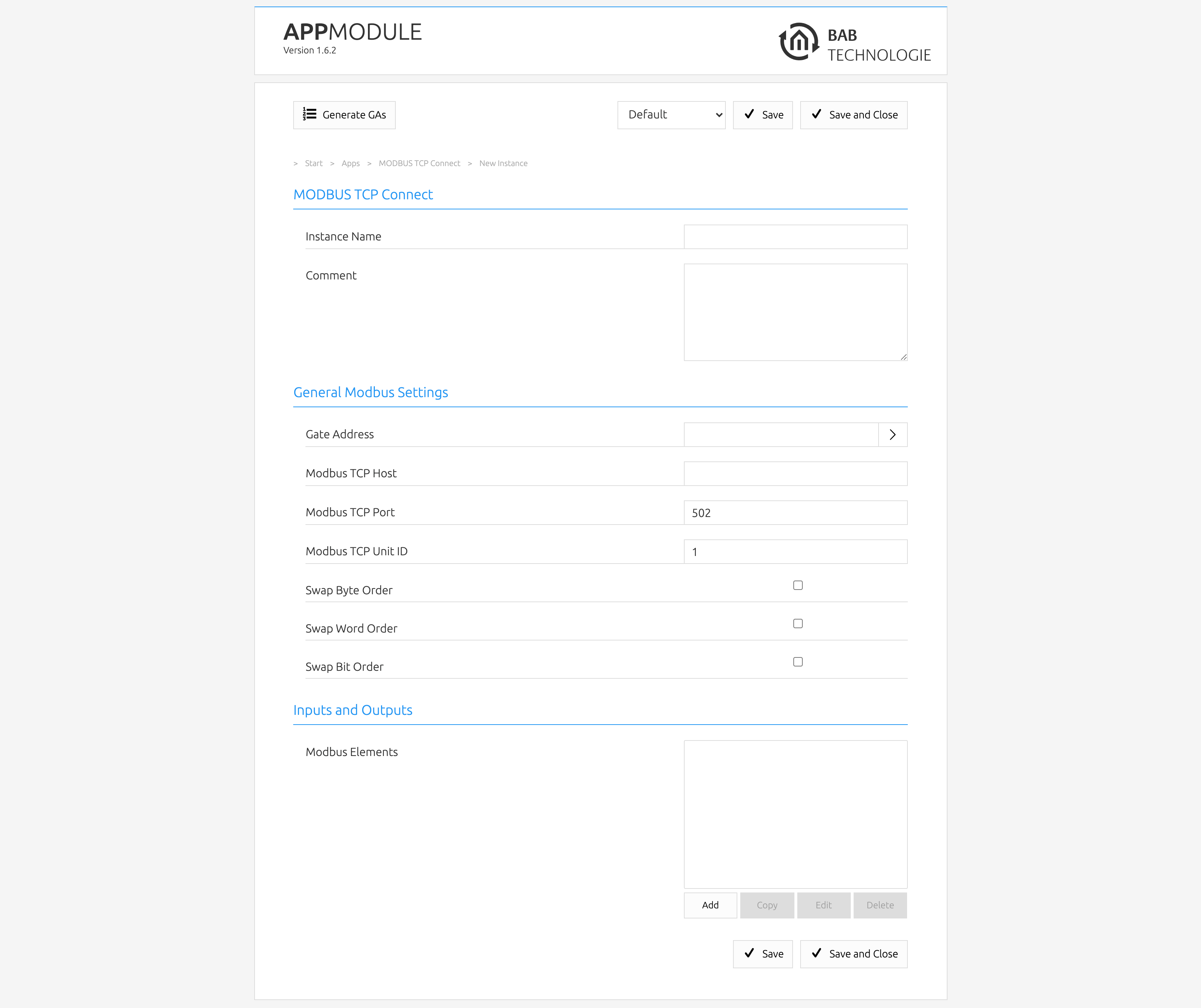 Requirements APP MODULE, Modbus TCP gateway