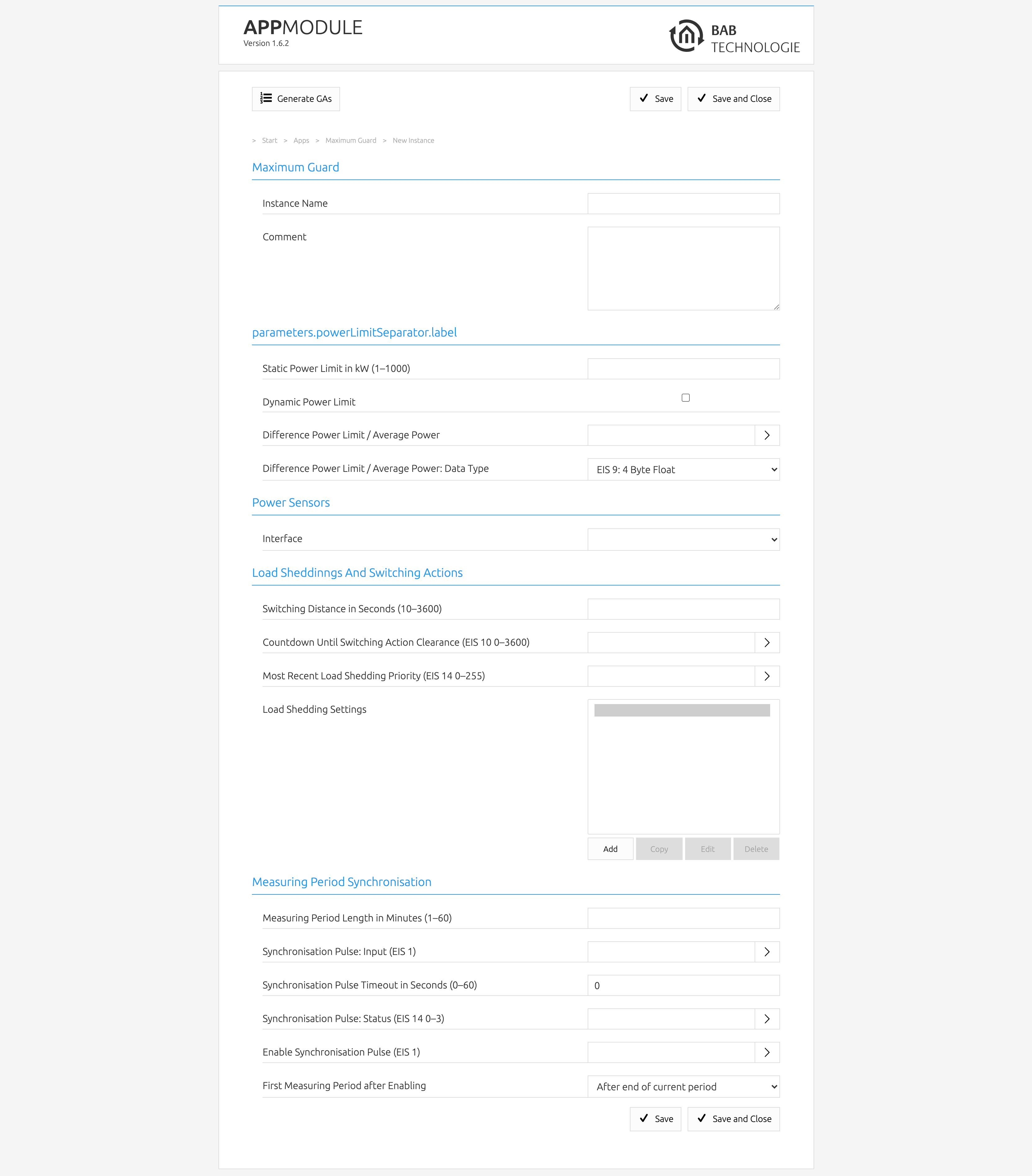 «Maximum Guard» enables you to implement peak shaving or load capping for load control in the energy industry. In this case, power peaks are capped by means of load shedding. By using «Maximum Guard», a significant reduction of the power price component of the grid utilisation fee can be achieved. The app switches off individual consumers or lines (groups of consumers) in time to permanently comply with the specified power limit. The APP replicates a maximum guard that controls compliance with load peaks.