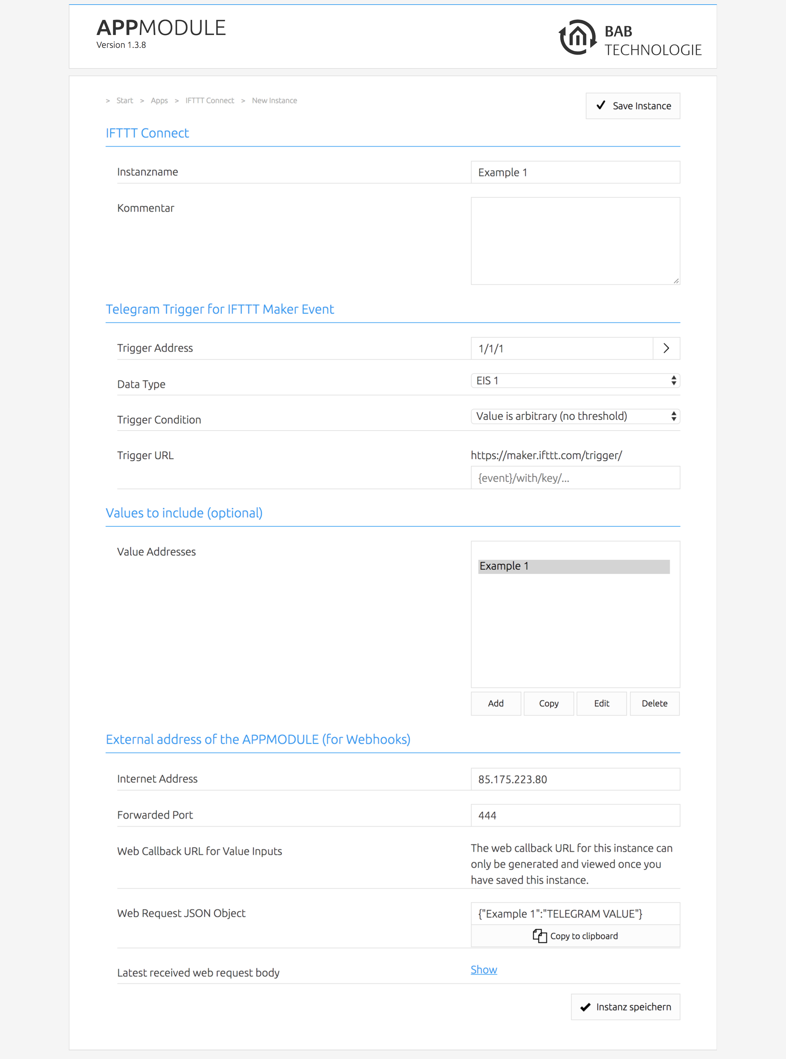With this app for the APPMODULE you connect over 600 IoT and web services with KNX or EnOcean. For example, transfer KNX counter readings to Google Tables or link your current geographical location to KNX scenes.